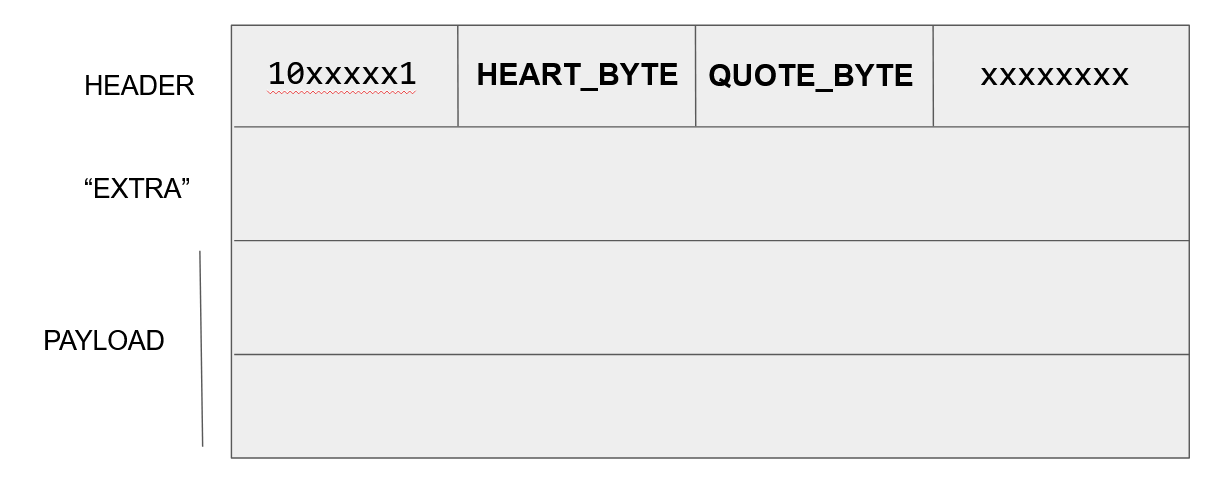 Eventually, the complex mechanics behind flipping to a different payload for higher levels of quoting was scrapped, and an entire byte in the header was sacrificed for the quote level. This QUOTE_BYTE permitted from 0-255 levels of quoting, and I decided that was more than enough.